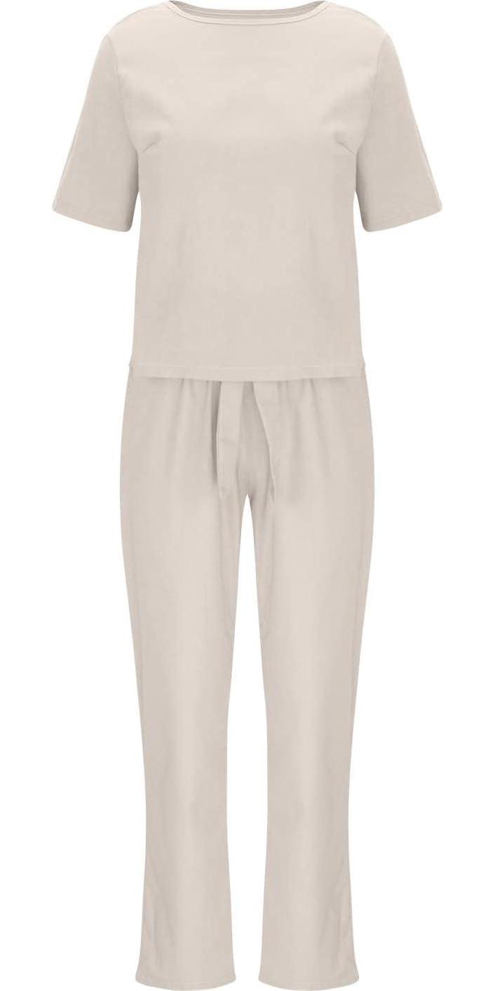 2 Piece Outfits for Women Summer Cotton Linen Casual Matching Set Short Sleeve T Shirts and Capri Pants with Pockets