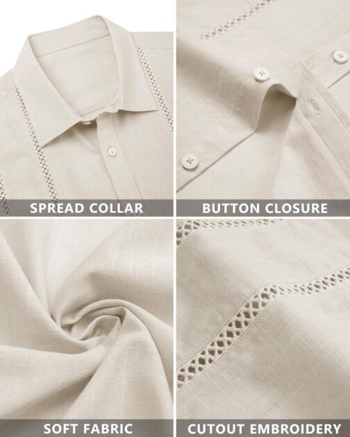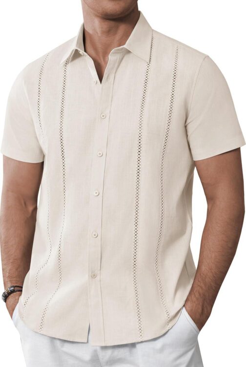 [Alimens & Gentle Men’s Cotton Linen Cuban Guayabera Shirts Short Sleeve Button Down Shirts Casual…]