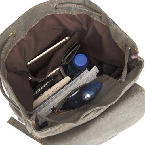 This BLUBOON vintage canvas backpack is classic, it shows you outstanding temperament. With drawstring design for the main compartment to tight well. Its magnet closure makes the back pack very easy to open and close