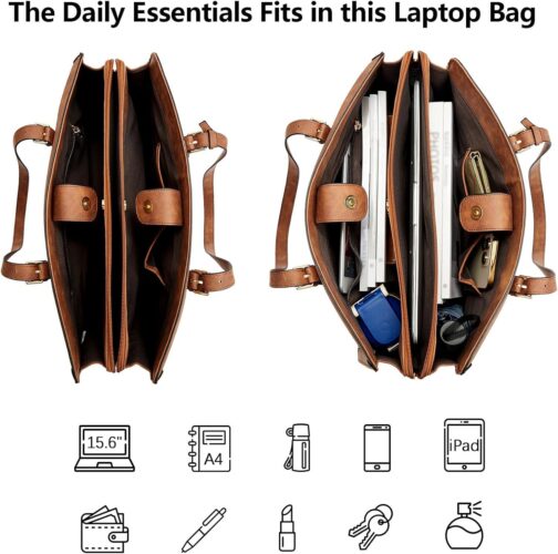 [BOSTANTEN Laptop Tote Bag for Women Work Bag Professional 15.6 inch Leather Briefcase Business Of…]