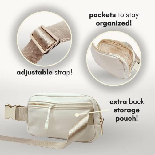 Boutique Belt Bag | Crossbody Fanny Pack for Women Fashionable | Cute Mini Everywhere Bum Hip Waist Pack | Small Fashion Travel Chest Bag | Gold Accessories | Adjustable Small Strap | Cream