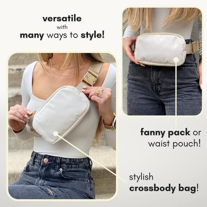 - [ FASHIONABLE! ] – These crossbody fanny packs for women are cute, slim, and modern! They feature trendy materials and can be used as a fashion waist pack, a designer crossbody bag, or a stunning belt bag! Offered in black fanny pack, cream fanny pack, and white fanny pack colors with luxury gold & silver accessories!