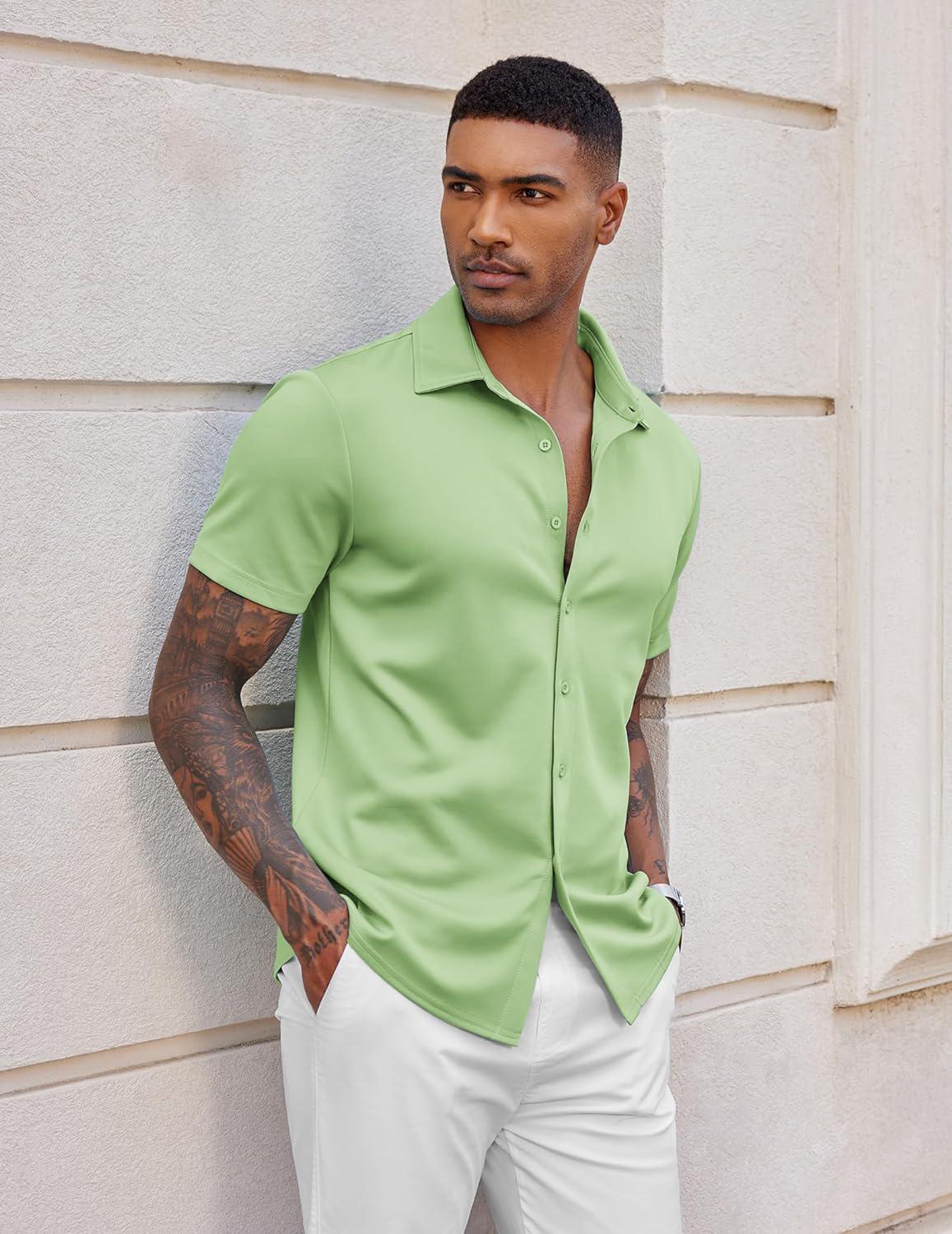 [COOFANDY Mens Casual Wrinkle Free Shirts Short Sleeve Button Down Summer Stretch Dress Shirt]