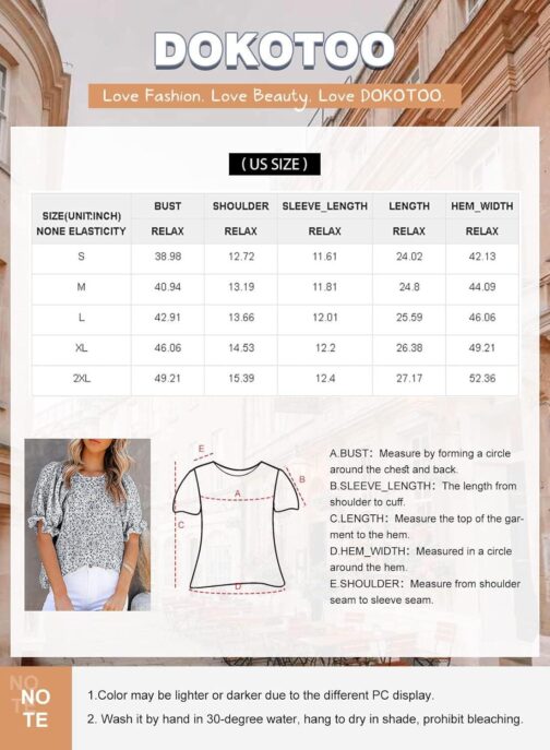 [Dokotoo Floral Print Blouses for Women Crewneck Smocked Puff Sleeve Shirts Casual Babydoll Tops]