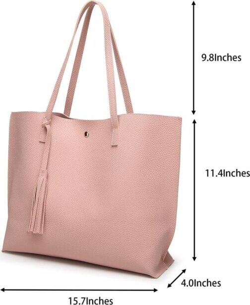Dreubea Women’s Soft Faux Leather Tote Shoulder Bag from, Big Capacity Tassel Handbag