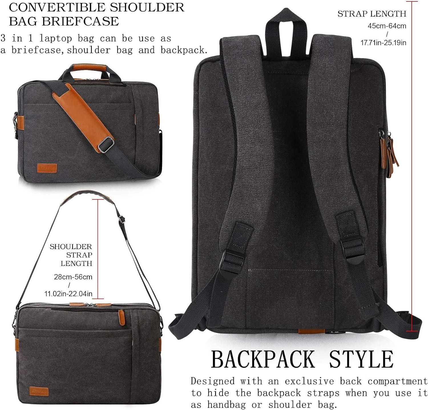 - Comfortable to Carry Humanization design, This hand-free canvas computer bag could always keep you comfortable. Removable shoulder strap, Hide-away handle and backpack straps are all padded. With widened luggage straps. Easy to carry this water resistant shoulder bag when on business or travel.