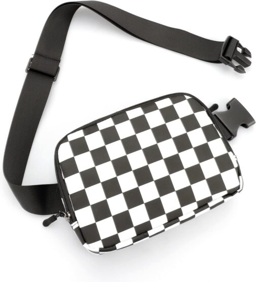 Fanny Pack Crossbody Bags for Women, Mini Belt Bag with Adjustable Strap, Fashionable Waterproof Waist packs for Workout, Running, Hiking (BLACK+WHITE)