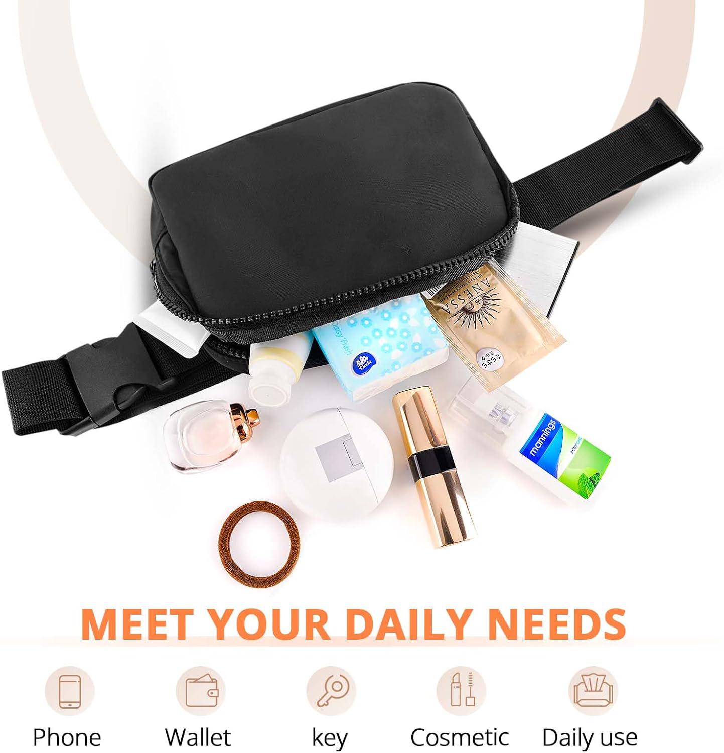 - LIGHTWEIGHT & SPACIOUS: Our belt bag is expertly crafted from premium materials, ensuring durability for long-lasting use. The bag features a roomy main compartment (7.5″ x 2″ x 5″) with an external zipper pocket and an inner mesh bag, providing ample space to effortlessly store and organize your belongings. Its breathable design prevents discomfort and excessive heat while wearing.