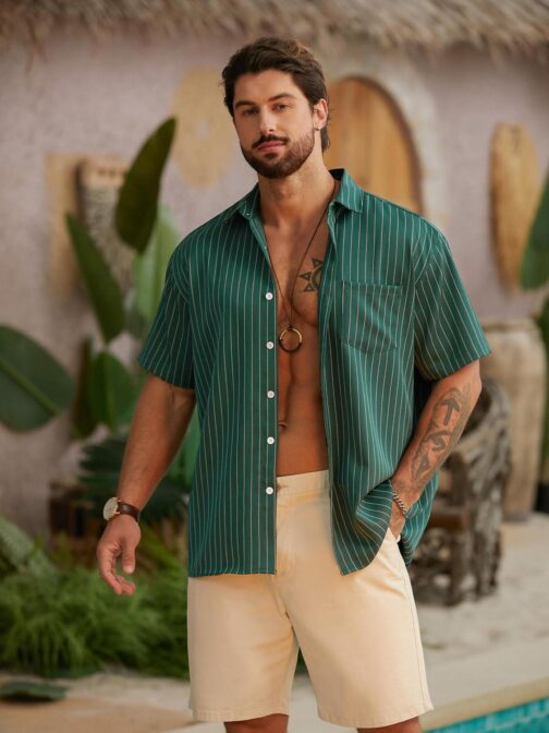 Hardaddy Mens Vertical Stripe Patterned Resort Summer Shirt
