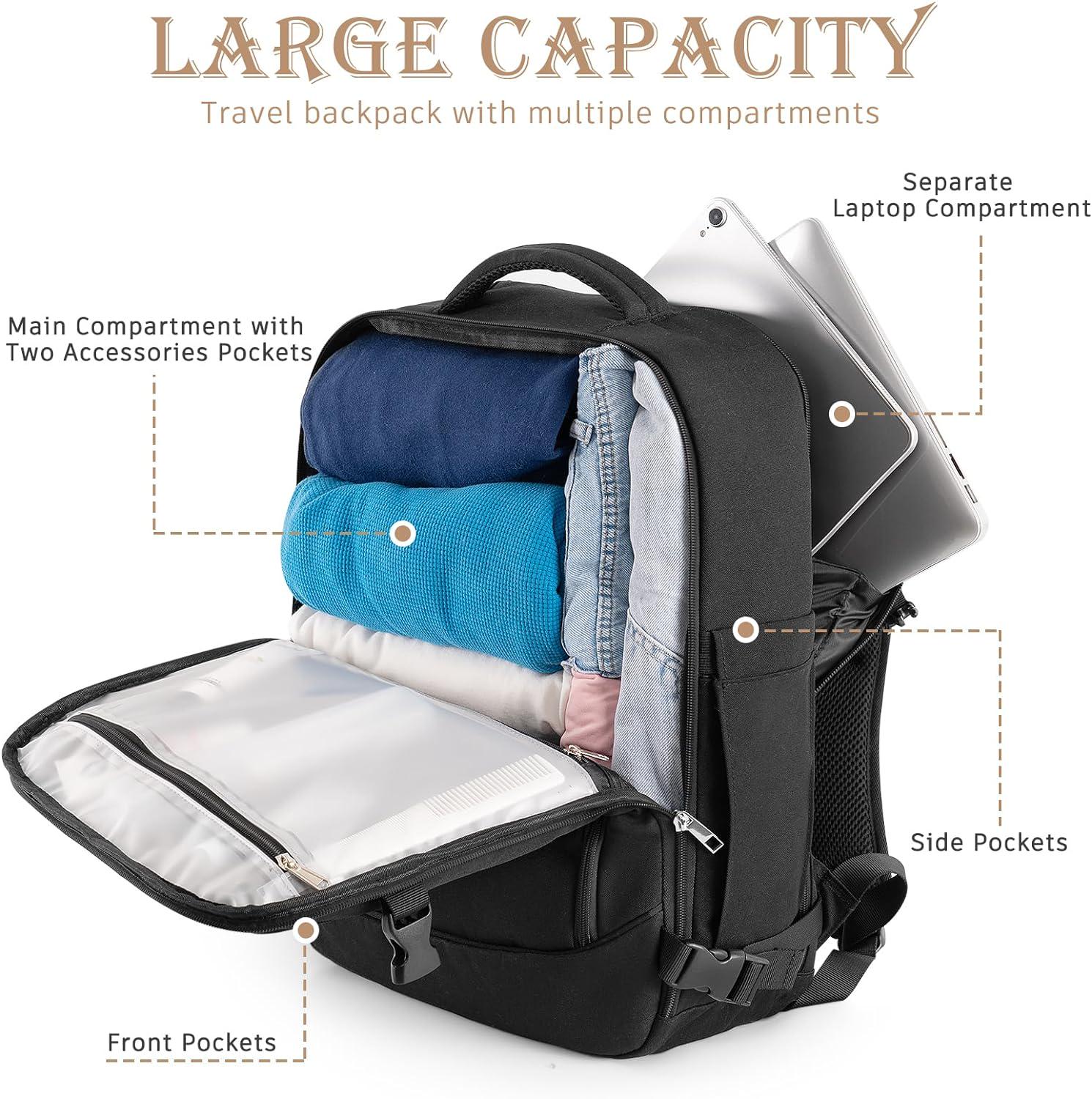 Large Backpack for Men Women, Travel Backpack Flight-approved Personal Item Size, 40L Carry on Backpack Casual Daypack, Black