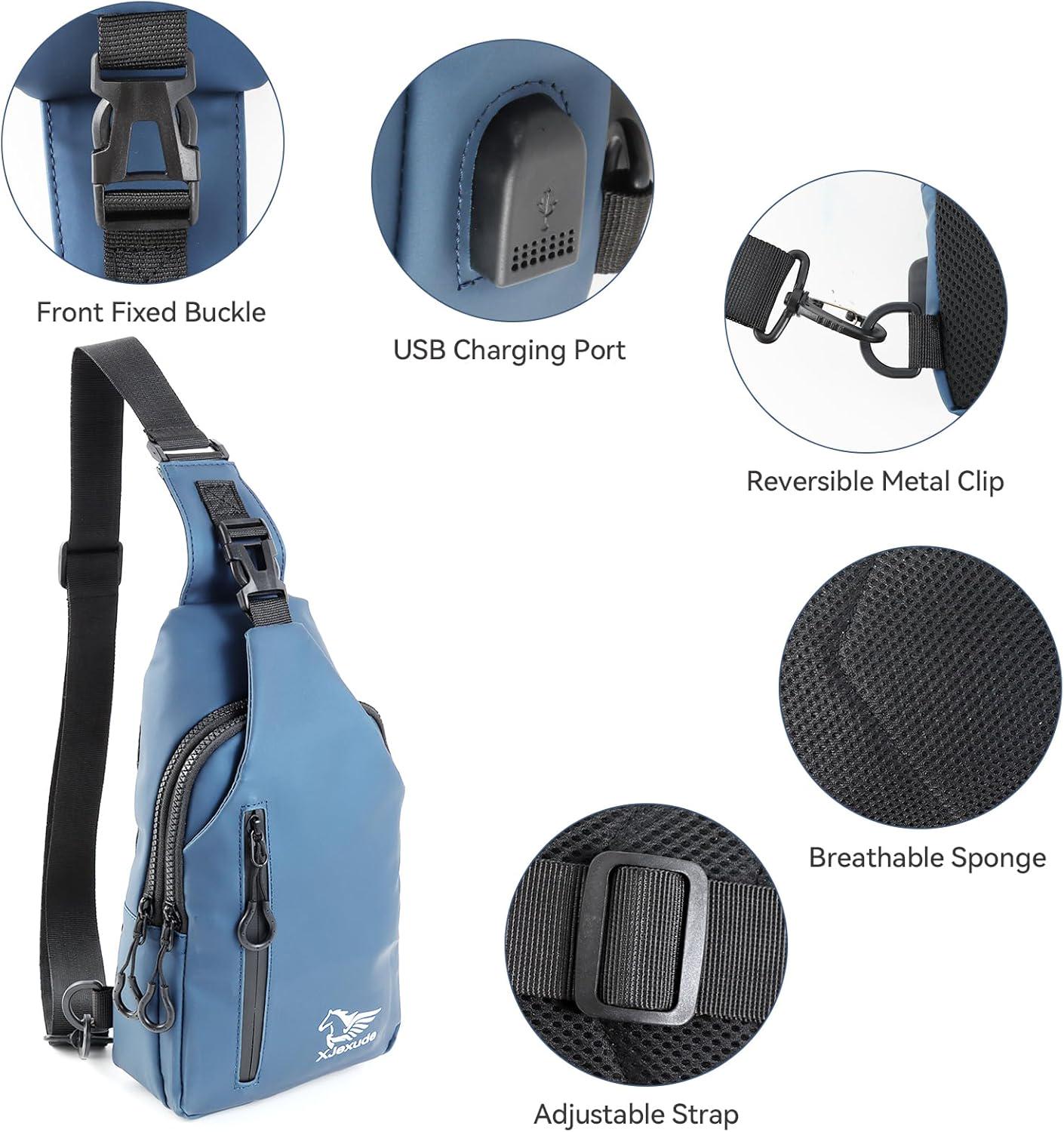 [XJexude Leather Sling Bag for Women Men Crossbody Bag Waterproof Small Sling Backpack Lightweight…]