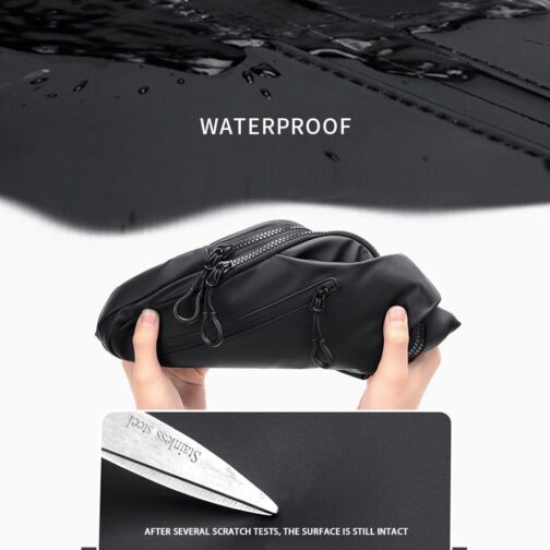 - ROOMY INNOVATION DEPARTMENT:measures 6.69 “L x 2.36 “W x 11.81 “H. 1 main pocket for books, wallet, tablet and other daily necessities, 1 front zippered pocket for easy access to bus can, 1 insert pocket for cell phone, 1 secondary zippered pocket for books, etc.The sling backpack has adjustable straps that you can tighten or relax to fit your body.
