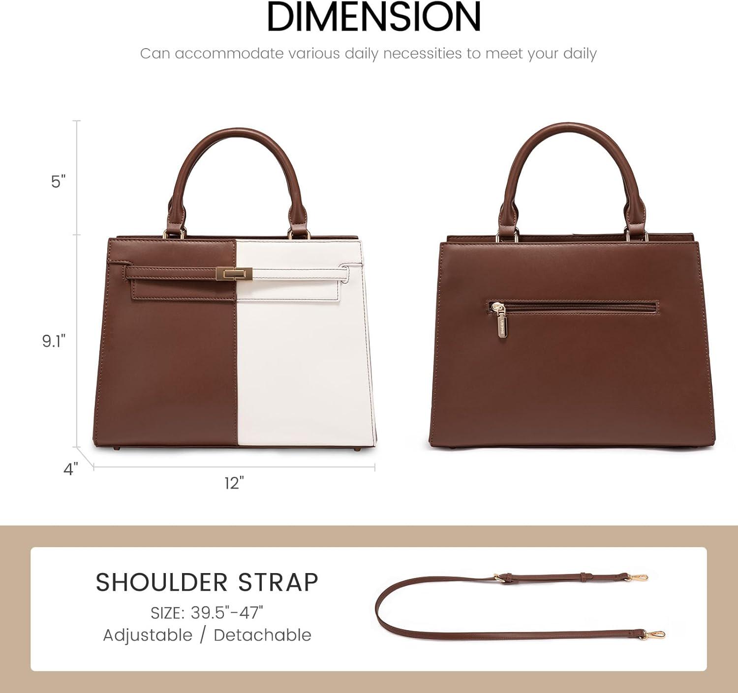 Stylish look PU leather purses for women with double handles and adjustable shoulder strap. The contrast color design of this women handbags gives it a professional yet stylish elegant look, making it a great choice for gift giving.