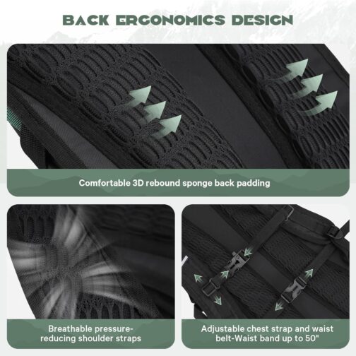 Reflective strips on the front and shoulders of the camping backpack allow you to be easily spotted at night, making it a practical and stylish design.