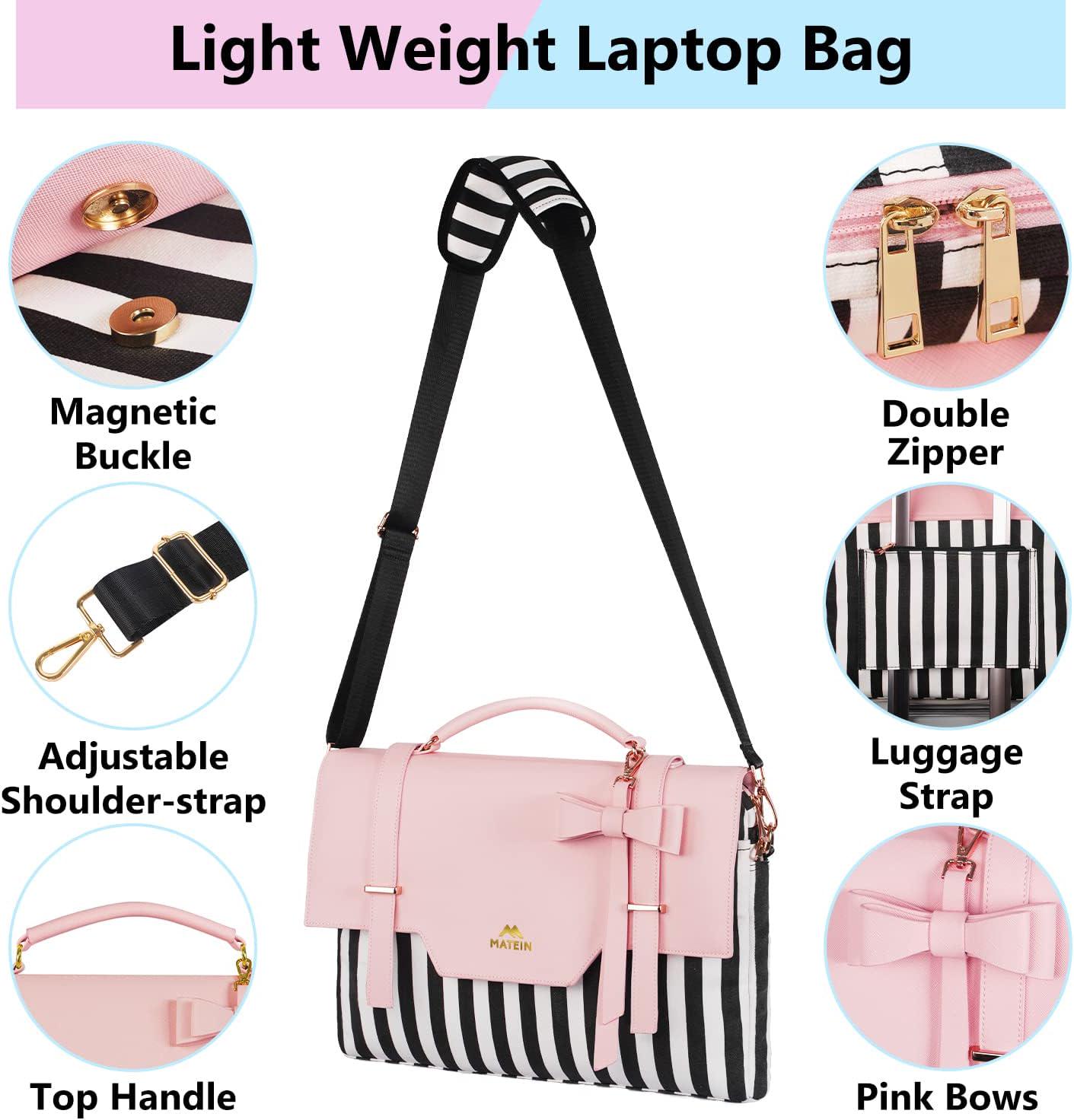 - Multi-occasions Use: Multiple pockets keep travel business essentials well organized. Pink laptop tote bag for women is suitable for school, business trip, work, college, travel and office. Unusual office gifts for women, girlfriend, ladies, student, sisters gifts on Thanksgiving & Christmas Day. Perfect girly gifts for women who want to stand out from the crowd with its super-cute striped design as a office work bag, laptop messenger bag, slim school shoulder bag or travel laptop commuter bag