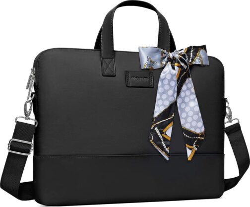 MOSISO Laptop Bag for Women, 15.6 inch Computer Bag Compatible with MacBook Pro 16 inch, HP, Dell, Lenovo, Asus, Razer Notebook, Laptop Shoulder Messenger Bag with Strap and Silk Scarf, Black