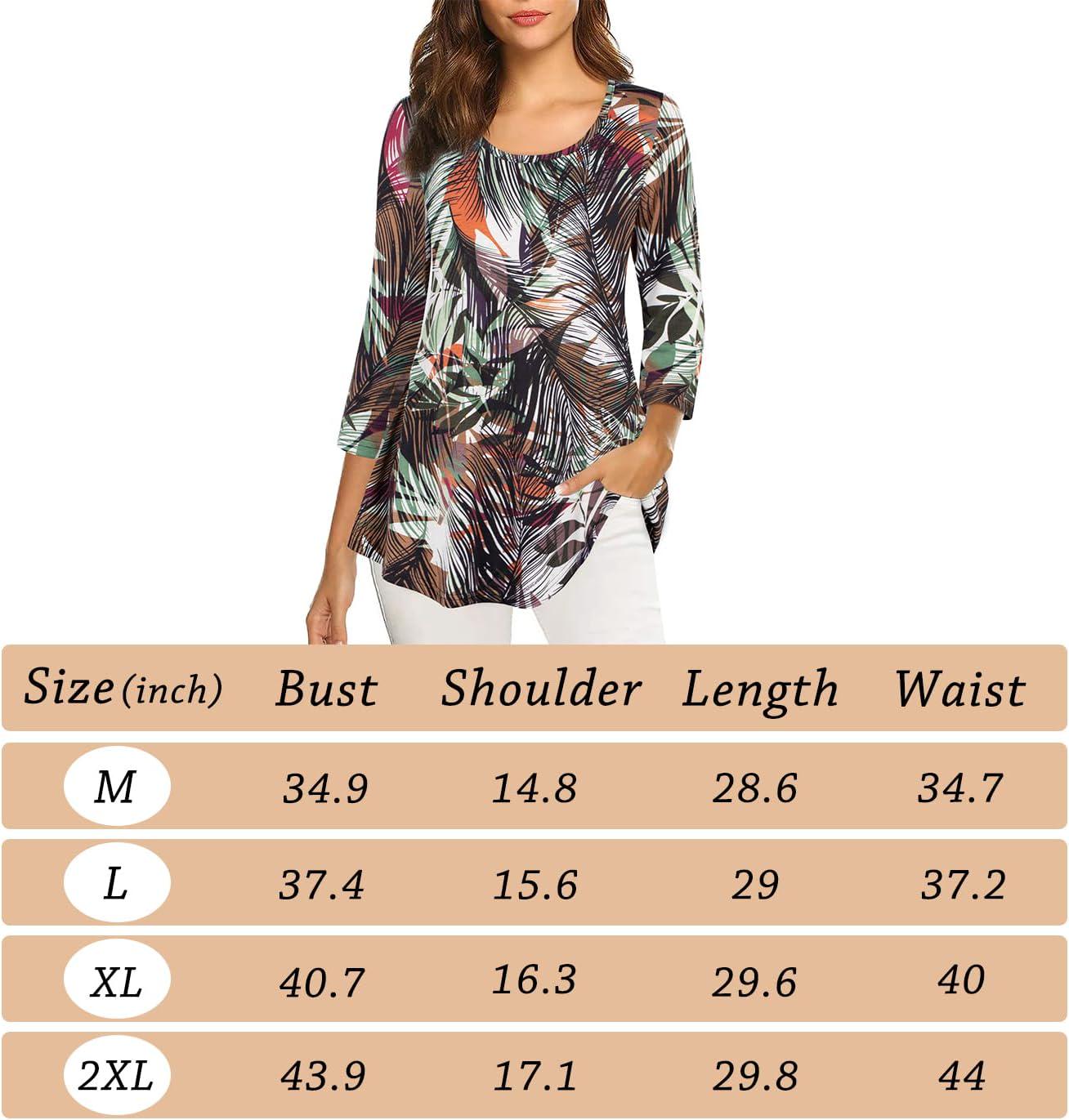 Nandashe Womens 3/4 Sleeves Floral Tunic Shirts Summer Casual Dressy Blouse Tops