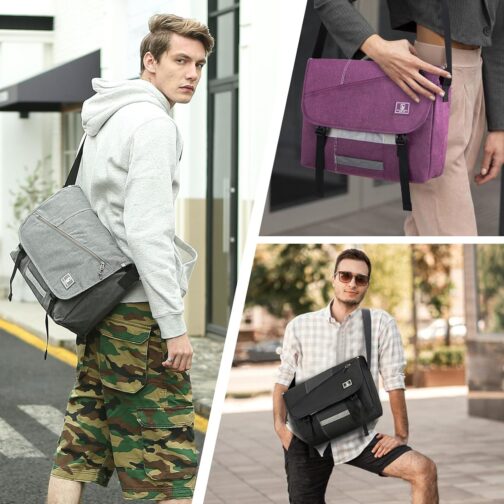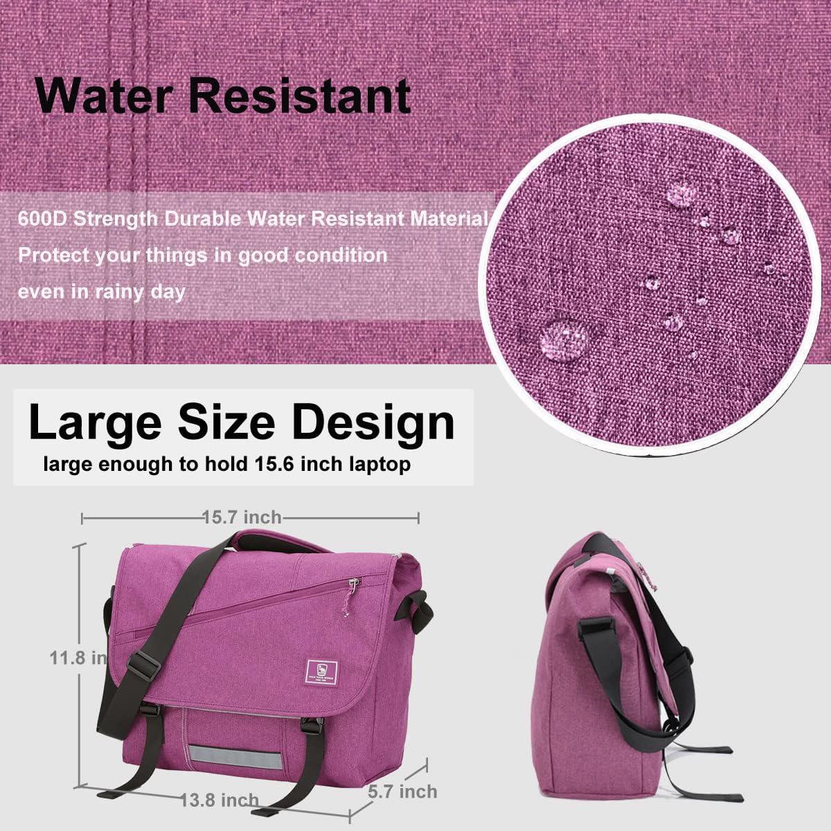 - LARGE CAPACITY: Laptop messenger bag with 10 pockets to meet your various need. The main compartment of the satchel bag is large enough to hold 15.6 inch laptop, books, clothes and other daily necessities. Inside bag have two elastic pockets on the side can be used to place your umbrella and water bottle.