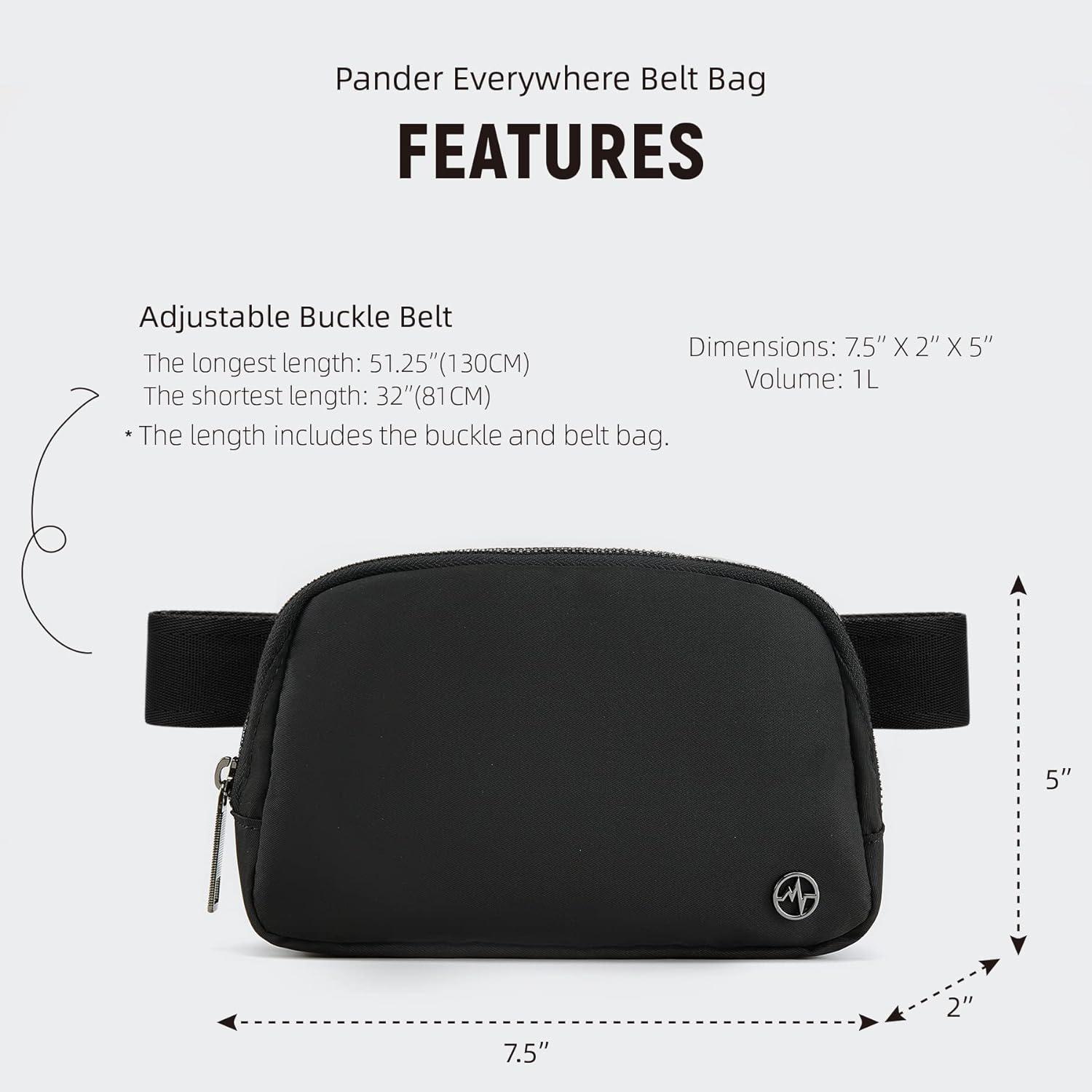 - MATERIAL – PANDER everywhere mini belt bag are made of nylon fabric, which is water resistant and anti-abrasion, ensure a long-lasting usage. The finest quality zipper would allow to get into the bag without worrying about dumping the contents.
