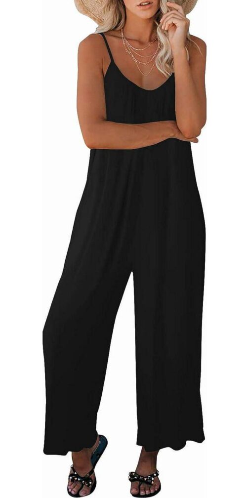 SNUGWIND Women’s Loose Sleeveless Jumpsuits Adjustable Spaghetti Strap Stretchy Long Pant Romper Jumpsuit with Pockets