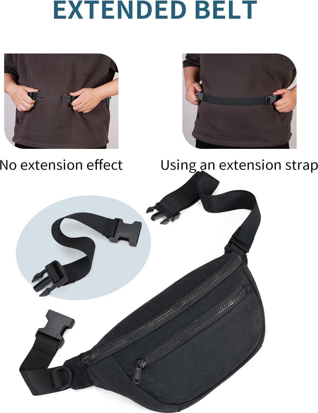 sportsnew Large Fanny Packs for Women, Waist Pack Fashion Crossbody Belt Bags for Walking Running Hiking Travel Bag Black patent pending