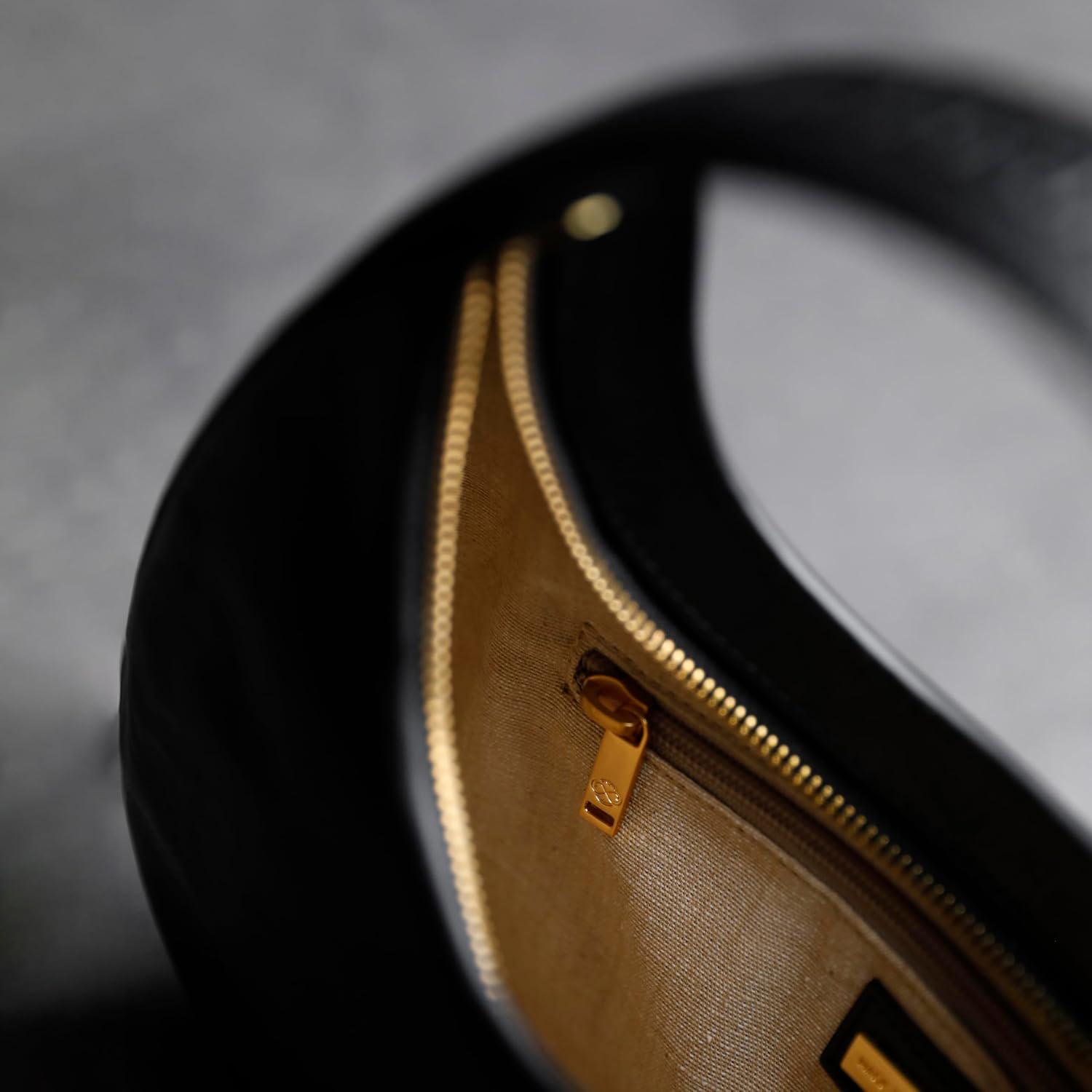 This Leather Handbag features a small, rounded shape that evokes tranquil beauty, complemented by a graceful round handle. Designed to be cradled in your arm, its compact size exudes effortless sophistication. The sleek minimal design reflects simplicity and elegance. Adorned with the Time Resistance logo on the handle, it is a perfect piece to have.