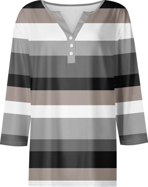 One of our popular styles this season is the women’s 3/4 sleeve t-shirts. These versatile tops are perfect for transitioning from day to night, offering a casual yet put-together look. The henley neck adds a touch of detail to the classic t-shirt silhouette, while the striped patterns add a trendy touch to any outfit.